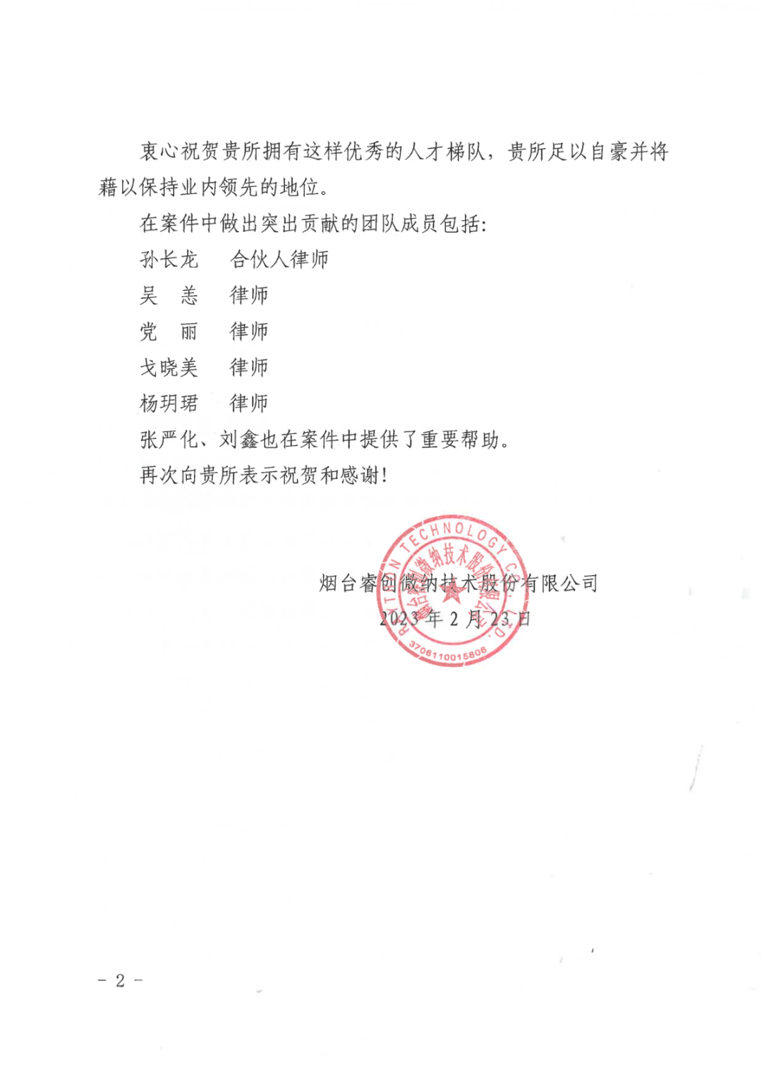 图1 睿创集团向搜狐体育寄送的表扬信